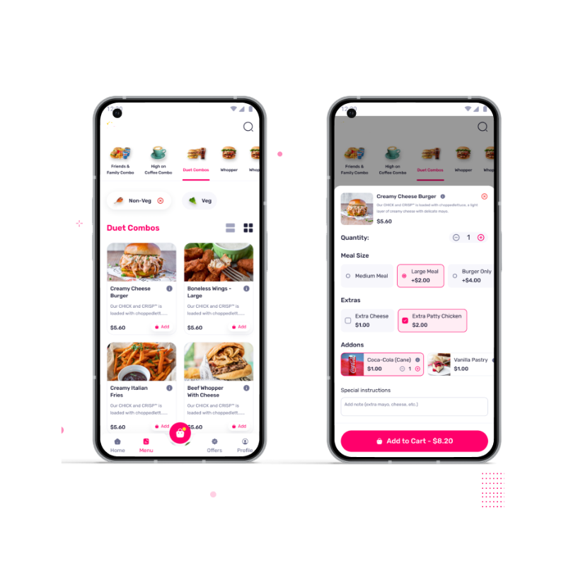 Notre application mobile transforme l’expérience de commande en un processus simple, rapide et agréable. Vos clients peuvent consulter l’intégralité de votre menu, visualiser les photos des plats, personnaliser leurs commandes (choix des accompagnements, niveaux de cuisson, allergies, etc.) et sélectionner leur mode de retrait : à emporter ou en livraison. Grâce aux notifications en temps réel, ils sont informés de la préparation et de la disponibilité de leur commande. En parallèle, le système vous permet de gérer efficacement les commandes, d’éviter les erreurs et de fluidifier votre organisation en cuisine. Une solution moderne qui améliore la satisfaction client et augmente naturellement vos ventes.